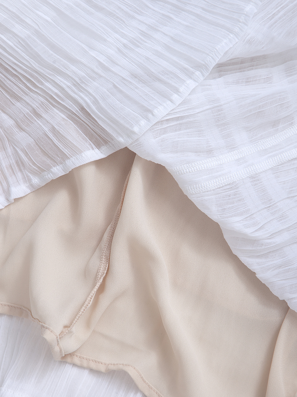 네추럴한 외관의 크링클 조직의 체크 자가드 소재가 고급스러운 롱 드레스 입니다.