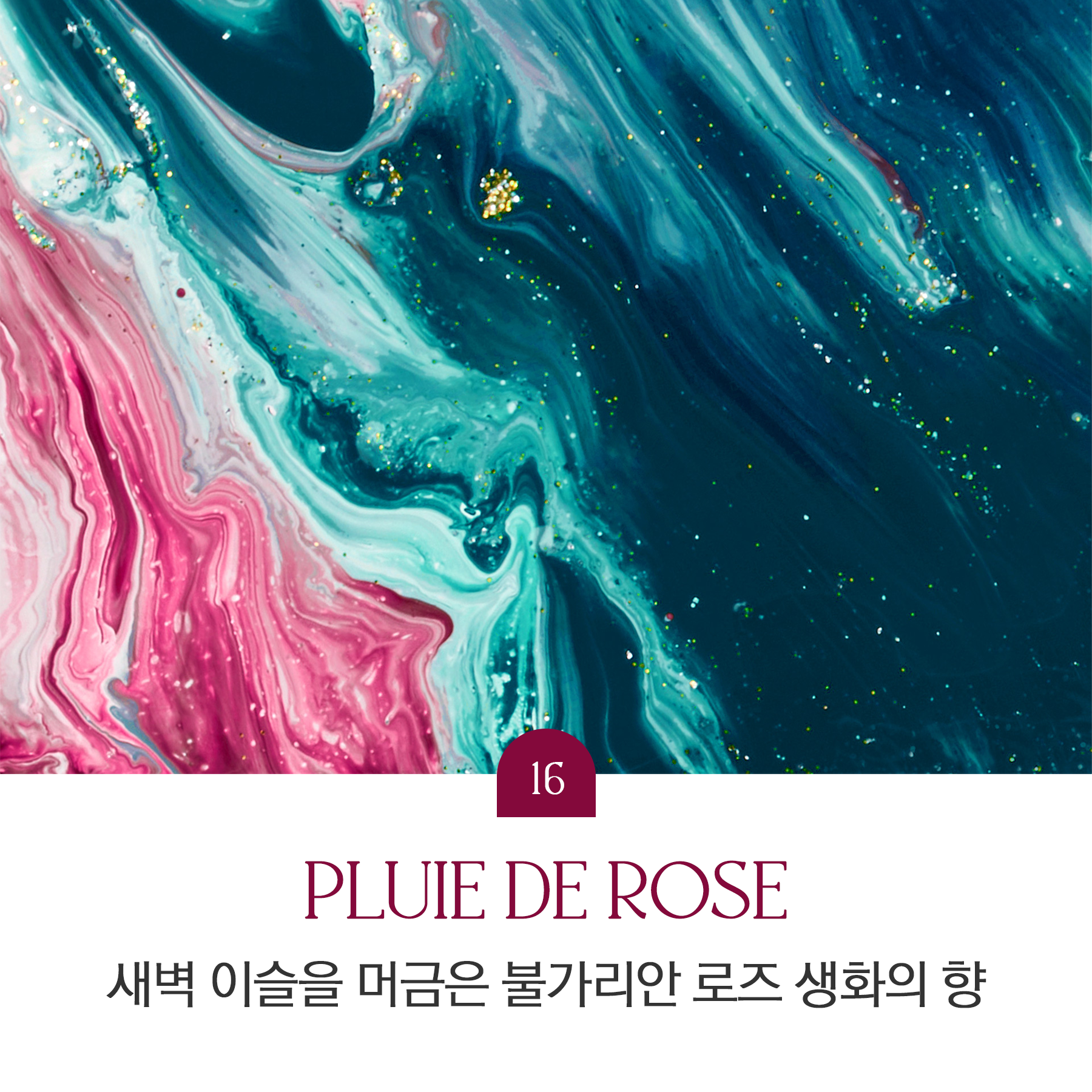 새벽 이슬이 맺힌 불가리안 장미꽃과 잎, 줄기에서 느낄 수 있는 그리너리한 향이 조화를 이루어 내추럴한 장미 그대로의 향을 선사합니다.